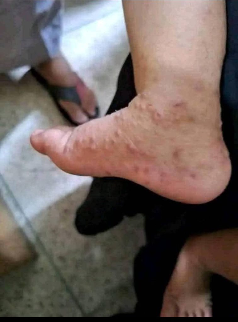 • লালচে ফুসকুড়ি – ছোট ছোট লালচে দানা বা ফোস্কার মতো দেখা যায়